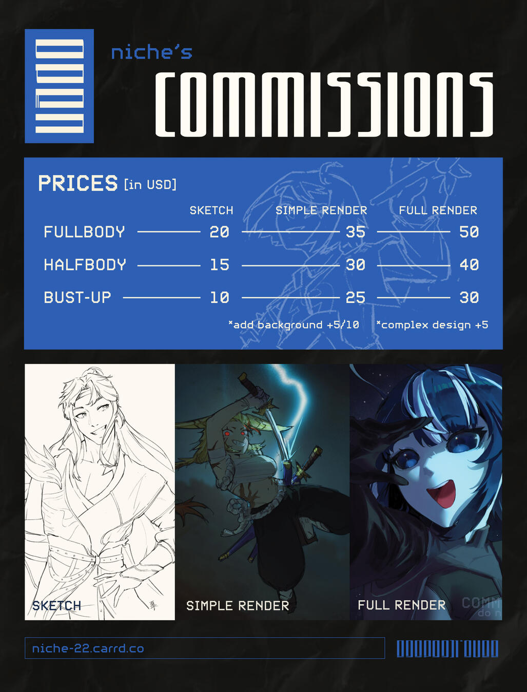 You get 3 rounds of changes on the commissioned piece included in the price.